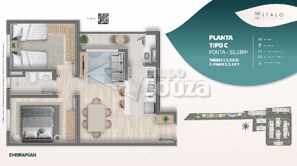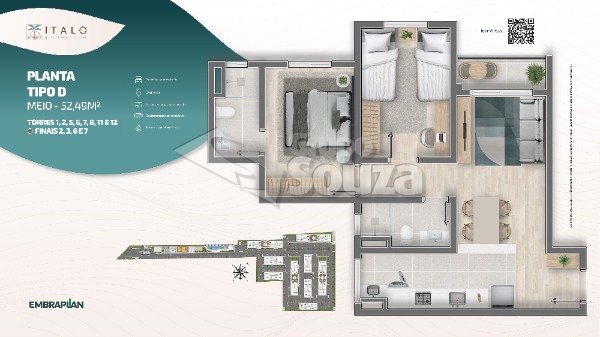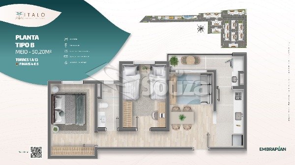 APARTAMENTO tipo com 49,02 m², 50,20 m², 50,51 m², 52,49 m² e 59,95 m²